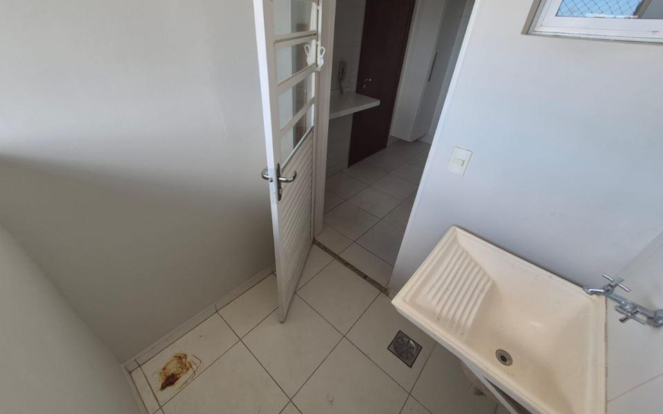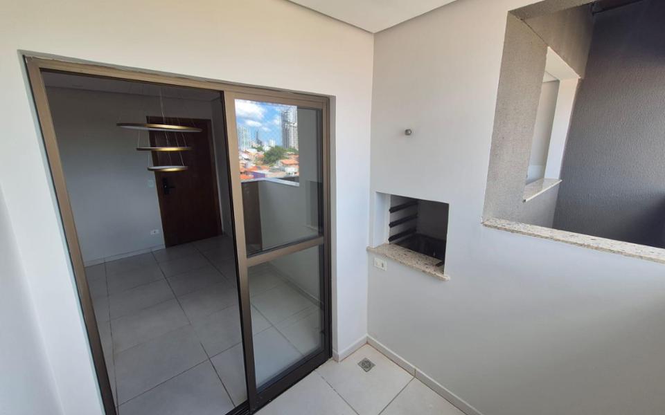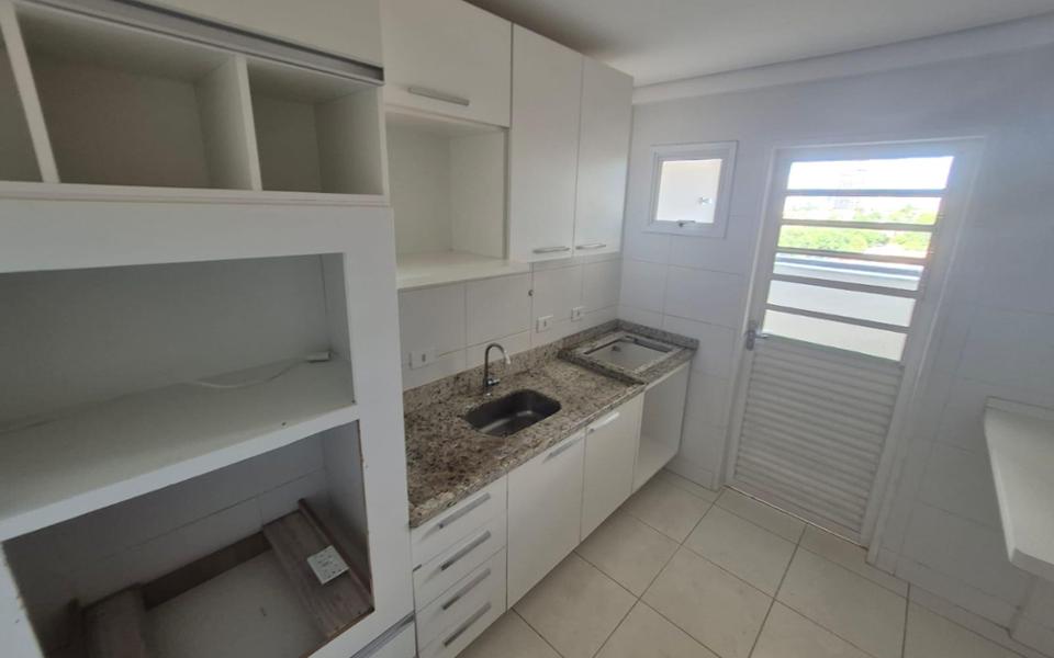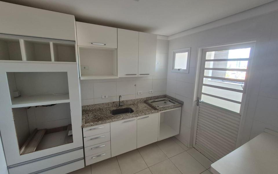 Sala, cozinha, uma suíte, um quarto, banheiro social, área de serviço, sacada com churrasqueira, duas vagas de garagem.