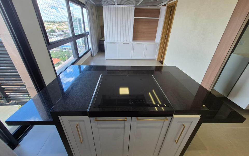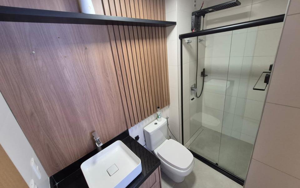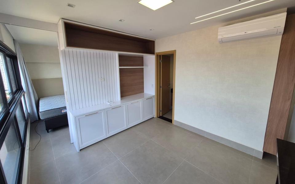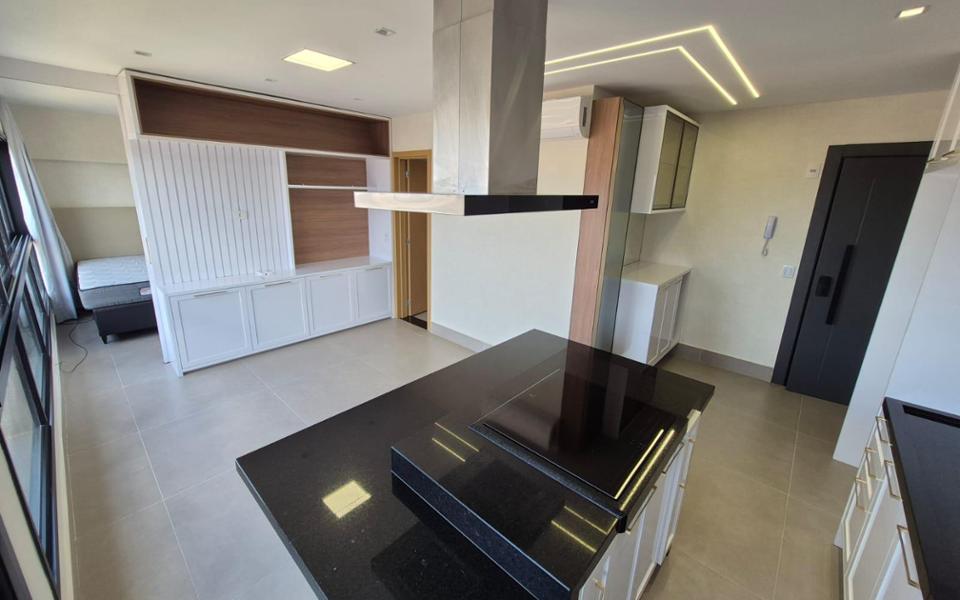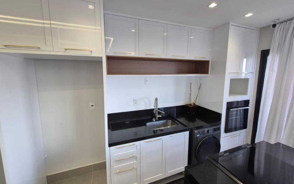 Sala, cozinha planejada, quarto completo e banheiro social, uma vaga de garagem no subsolo.